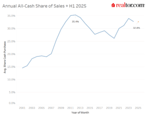 2001年には15%しかなかった現金買付が、ここ数年は、30%台。3戸に1戸は、現金買いなのです。