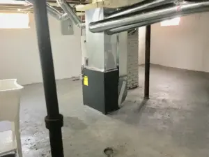 地下室は、土台でもあり、また、給水器やガス式の暖房機が置かれるためのスペースでした。下の写真のようなイメージです。ちなみに、下の写真は、私たちの実際の投資物件の地下室。物件概要自体は、こちらからご覧いただけます。